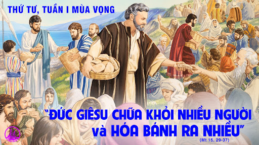 "Chúa Giêsu chữa nhiều người và hoá bánh ra nhiều".>