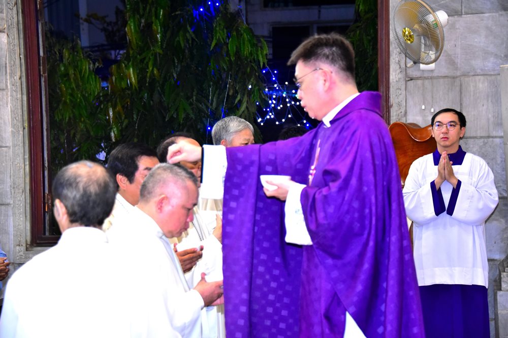 Sau bài giảng, linh mục Martinô đọc lời nguyện và làm phép tro ngay trên cung thánh. Kế đó, ngài trao chén tro cho các ông trong Ban Thừa Tác viên và xức tro trên đầu cho từng người.
