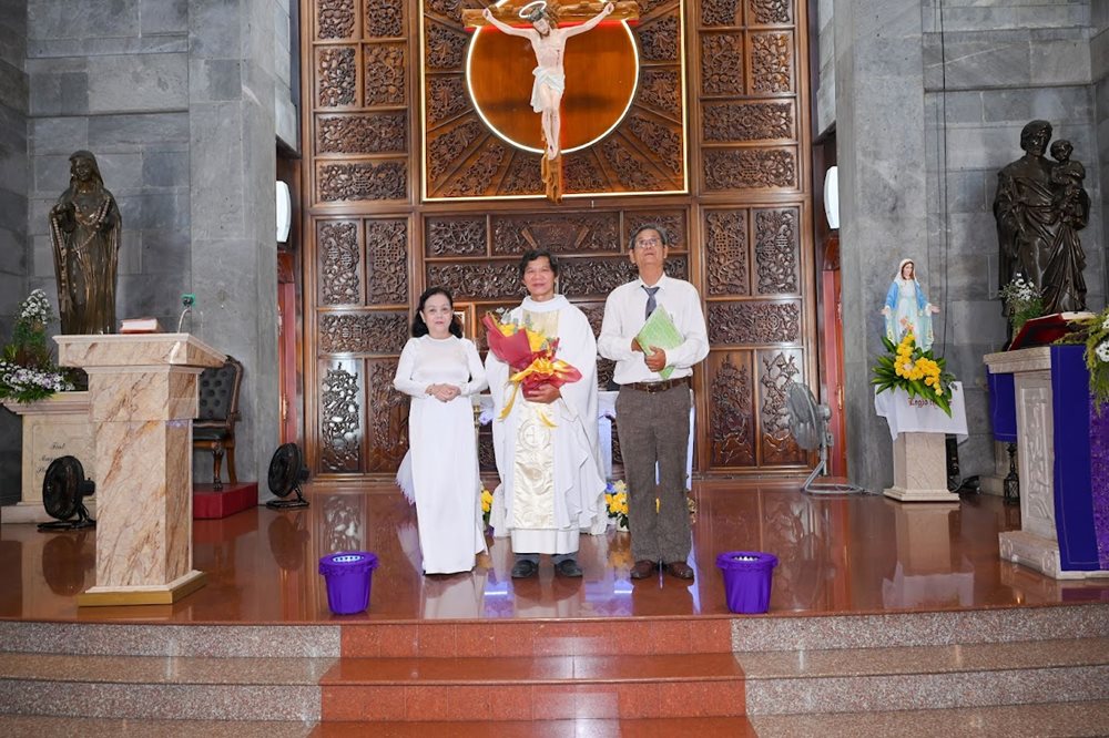 Sau lời nguyện hiệp lễ, ông Giuse Trần Văn Việt, Trưởng Curia lên ngỏ lời cảm ơn Lm chánh xứ Martinô và Lm chủ tế Gioan Baotixita và các hội viên đã đến hiệp dâng Thánh lễ. Vị đại diện dâng lên Lm Gioan Baotixita bó hoa tươi thắm nói lên tâm tình tri ân đối với vị mục tử.
