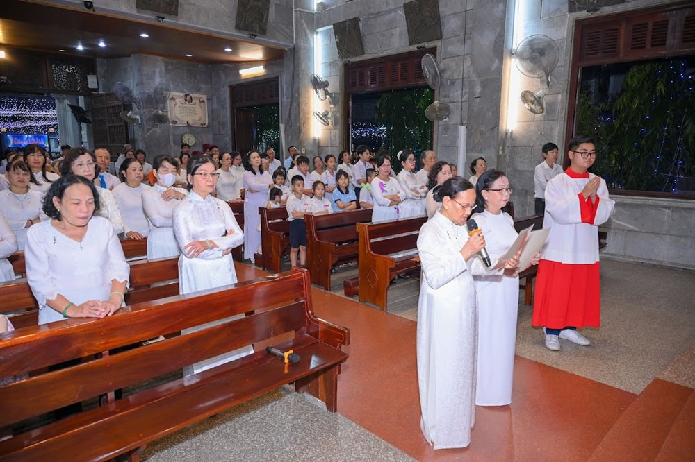 Trước Thánh lễ, lúc 17g00, các hội viên quy tụ trong ngôi thánh đường cùng nhau lần hạt kinh Mân côi qua năm sự vui.