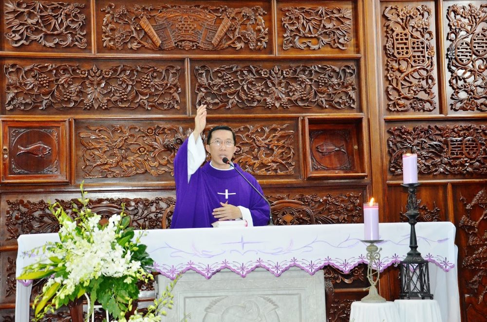 “Hãy vui mừng hoan hỷ” là đề tài chia sẻ của cha Giuse Đặng Chí Lĩnh, đặc trách về ơn gọi ĐCV Thánh Giuse Sài Gòn, cho các em thiếu nhi và cộng đoàn giáo xứ Vĩnh Hòa, giáo hạt Phú Thọ, trong buổi tĩnh tâm diễn ra lúc 17g30 thứ Ba, Tuần III Mùa Vọng, nhân dịp ngài được cha xứ Gioakim Lê Hậu Hán, mời về giảng phòng cho cộng đoàn giáo xứ vào các ngày 18, 19 và 20.12.2018.