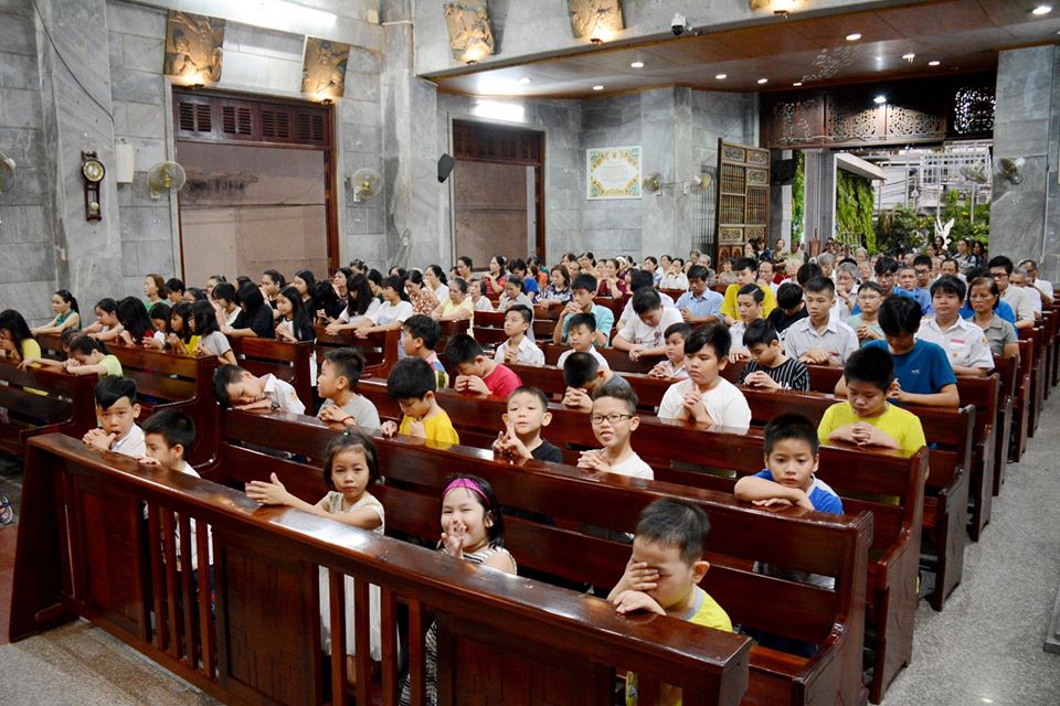Chiều: Lần chuỗi Mân Côi – Thánh lễ - Sau lễ Chầu Thánh Thể