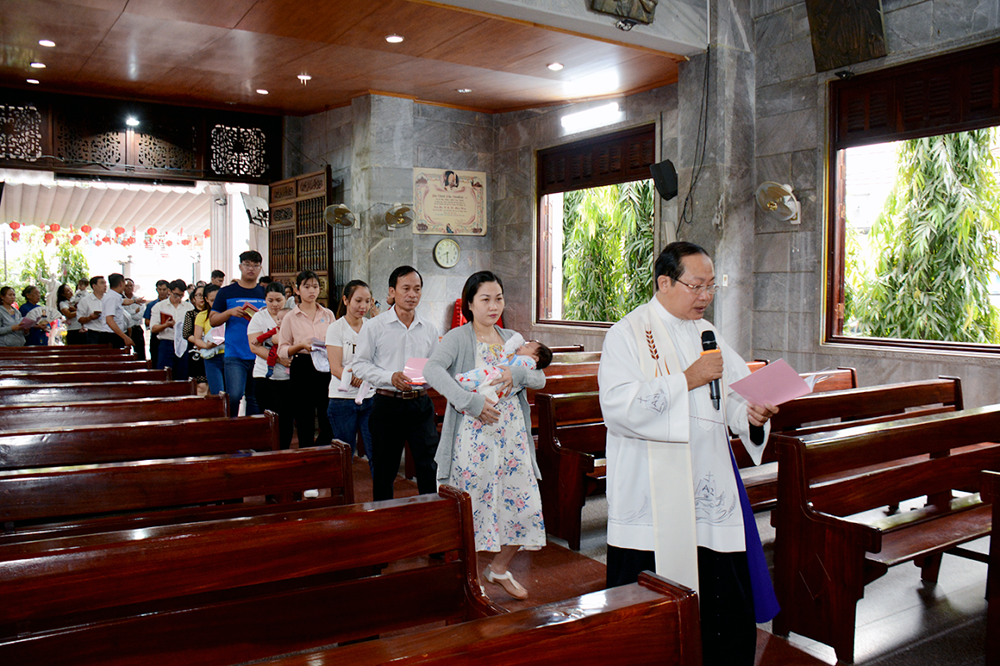 Vào lúc 8g30 sáng Chúa nhật ngày 02.02.2020, Linh mục Gioakim Lê Hậu Hán, chánh xứ giáo xứ Vĩnh Hòa đã chủ sự nghi thức Rửa tội cho các trẻ sơ sinh trong giáo xứ.