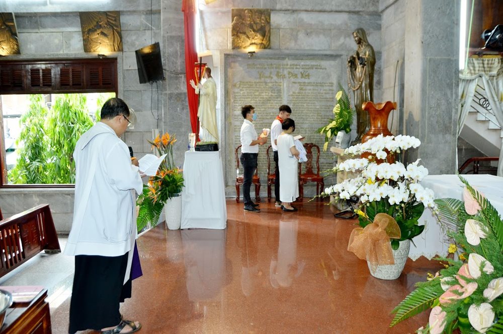 Vào lúc 8g30 sáng Chúa nhật ngày 4.4.2021, Lm Gioakim Lê Hậu Hán - Chánh xứ Vĩnh Hòa, đã chủ sự nghi thức Rửa tội cho trẻ sơ sinh trong giáo xứ.
