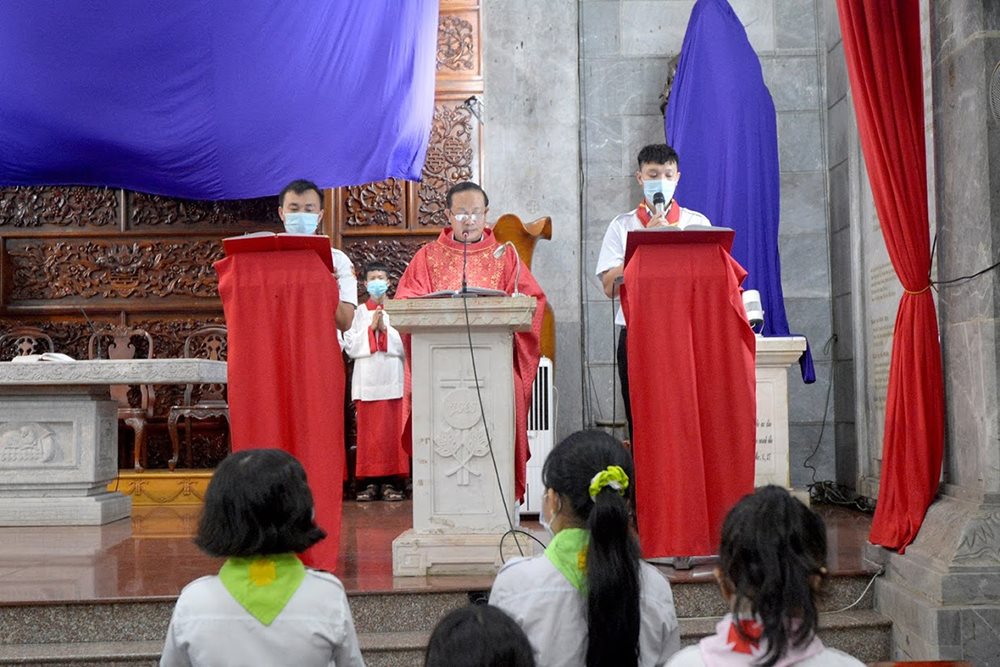 Vào chiều thứ Sáu tuần Thánh, lúc 18g ngày 2.4.2021, Lm Gioakim Lê Hậu Hán – Chánh xứ Vĩnh Hòa, cùng các em thiếu nhi cử hành buổi Tưởng niệm Cuộc thương khó của Chúa Giêsu.