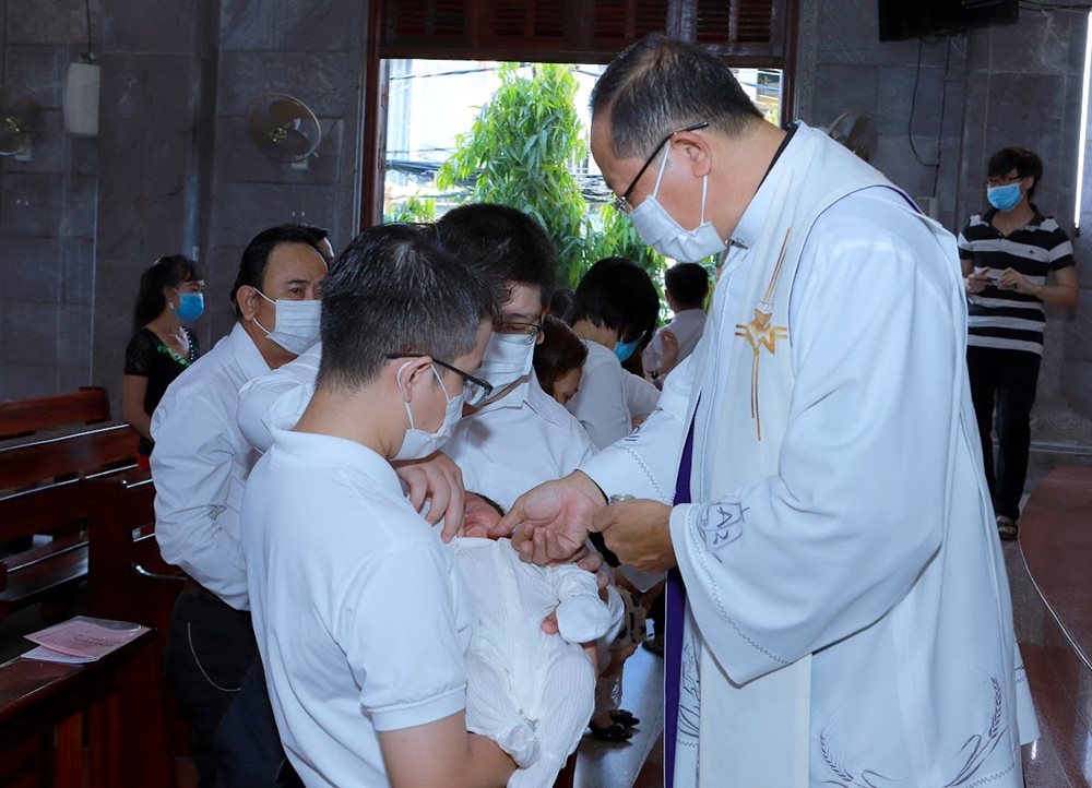 Vào lúc 8g30 sáng Chúa nhật, ngày 3-4-2022, linh mục Gioakim Lê Hậu Hán - Chánh xứ Vĩnh Hòa, đã chủ sự nghi thức Rửa tội cho các trẻ em sơ sinh trong giáo xứ.
